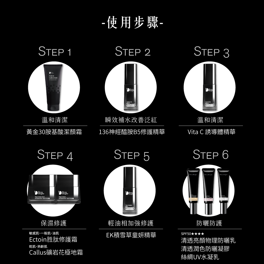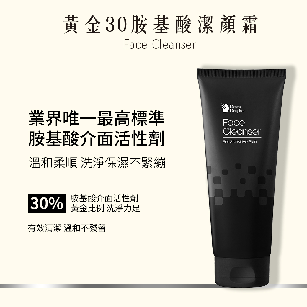 每天早晚將黃金30胺基酸潔顏霜加水在掌心起泡後,於全臉交替使用向上的畫圓手勢,可以針對皮膚粉刺較多的地方加強按摩皮膚,最後再以冷水沖淨並搭配後續保養程序。敏感性皮膚適用。